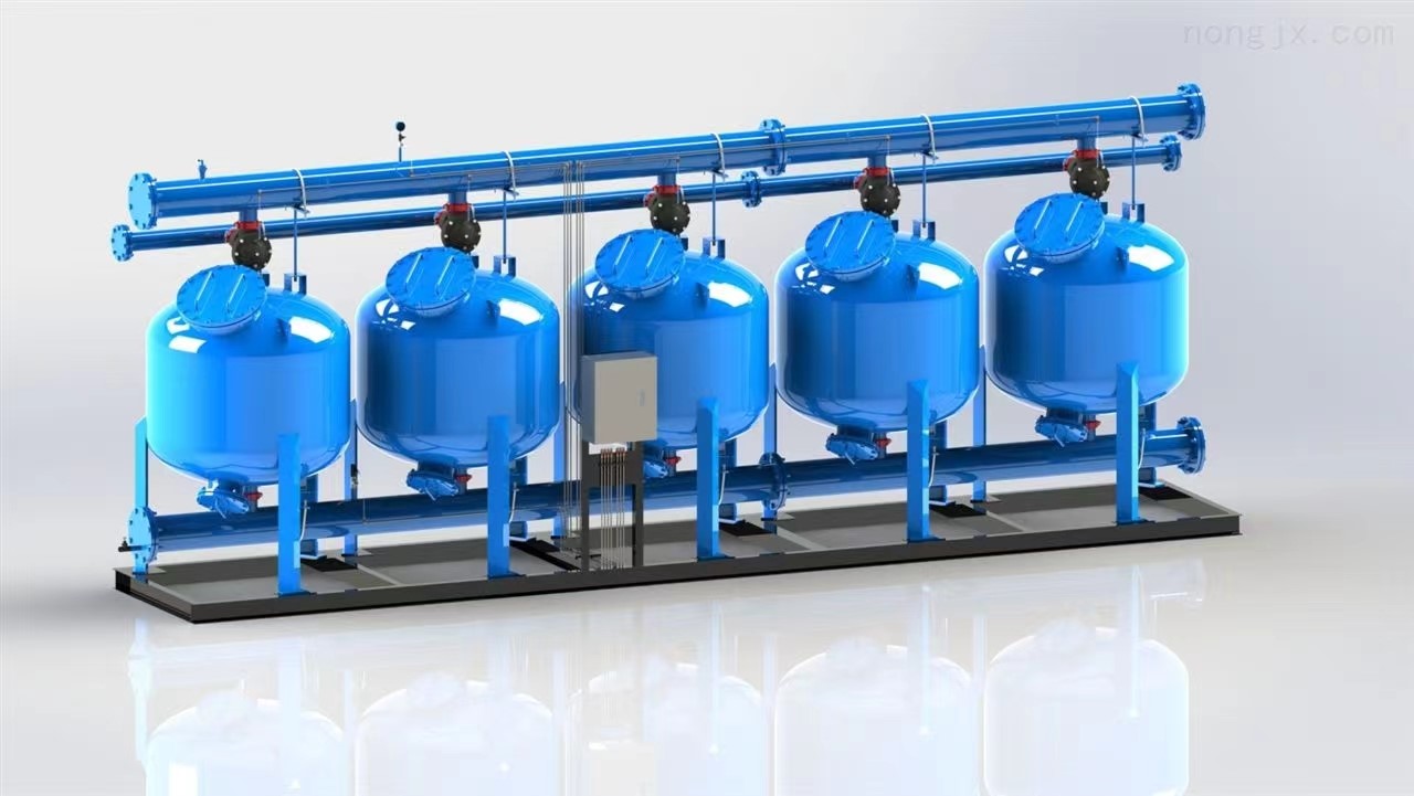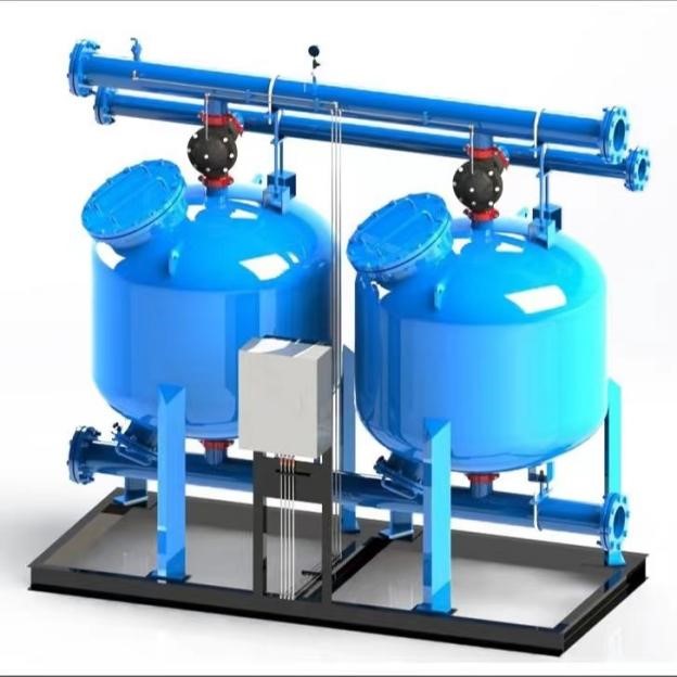 多罐組合,實(shí)現(xiàn)大水量、高濾速過濾,自壓反洗,根據(jù)壓差和時(shí)間控制,依次反洗